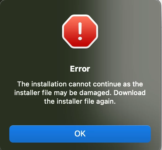 Ggobinath24561247i6x6ParticipantForum|Forum|3 years agoMay 23, 2022Question*Installation Error* The installation cannot continue as the installer file may be damaged. DownloadForum|Forum|3 years agoMay 23, 20221 reply868 viewsmac m1Installation