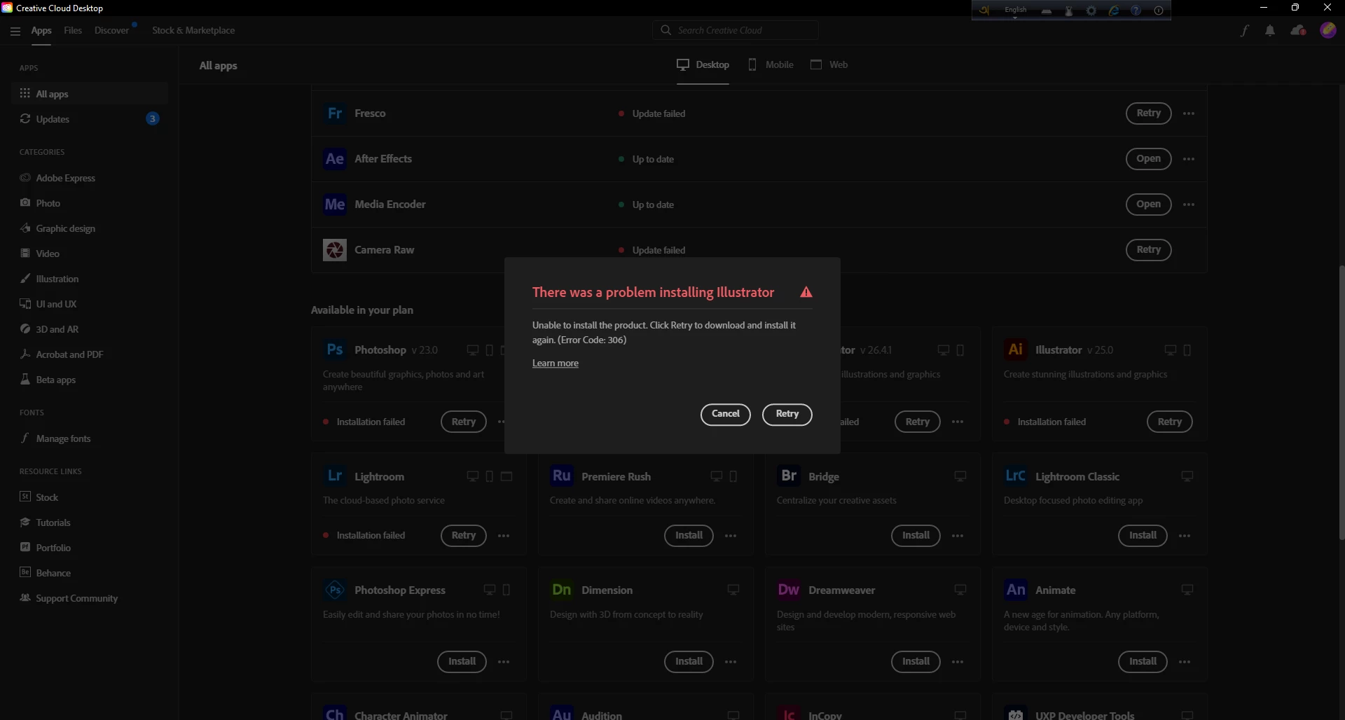MMd. Sohanur257430020k6nParticipantForum|Forum|3 years agoAugust 22, 2022QuestionInstallation FailedForum|Forum|3 years agoAugust 22, 20221 reply164 viewsI purchased an all apps subscription. But I can not install any apps from the creative cloud. It shows unable to sync. note: I took a subscription in an email for 3 days. Then I took another subscription in another email.CC FAQNew userInstallationCreative Cloud