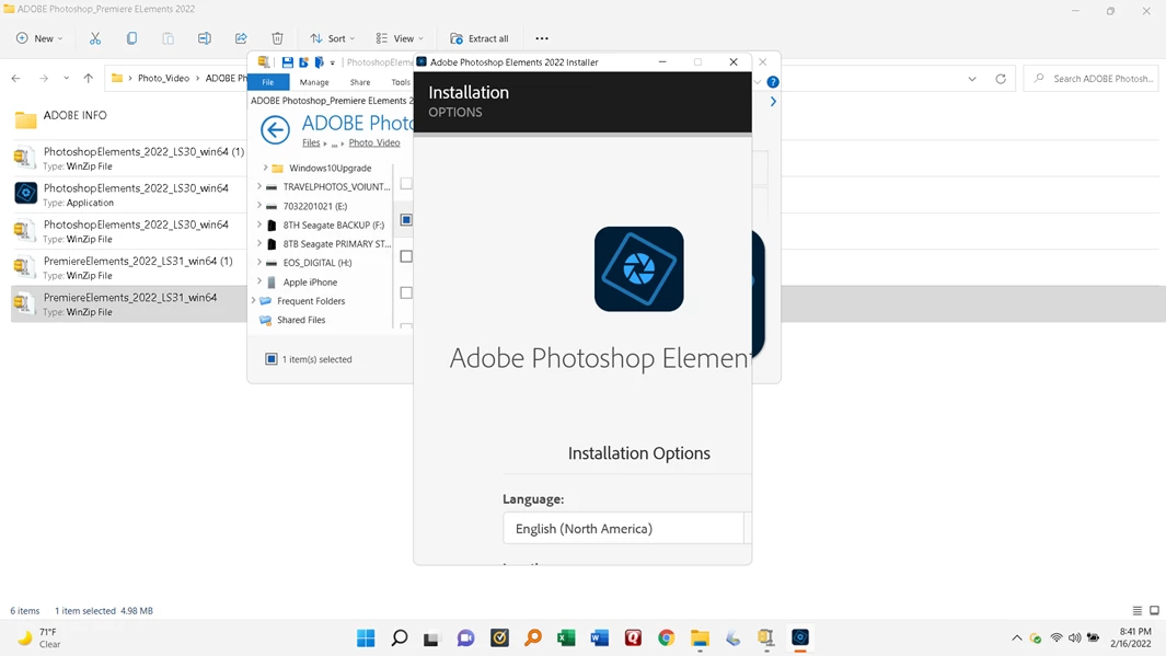 When I reinstalled Photoshop Elements 2022 I got this on my screen. which means I can't finish my installation. HELP/