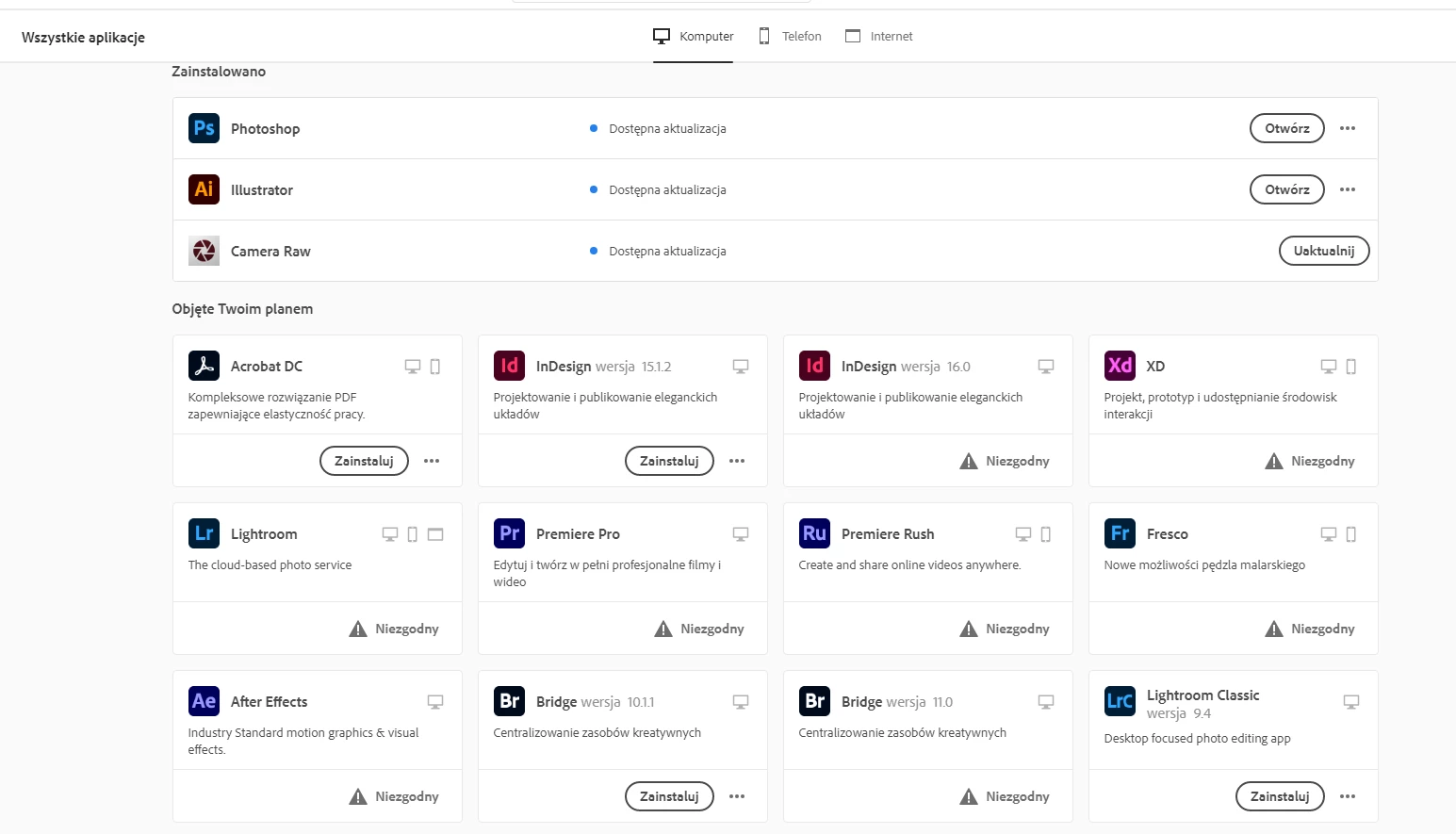 Now I have installed only photoshop, illustrator, camera raw...