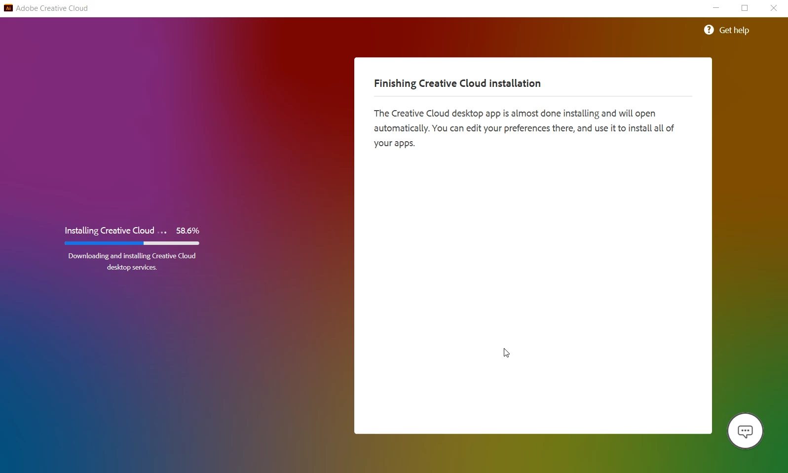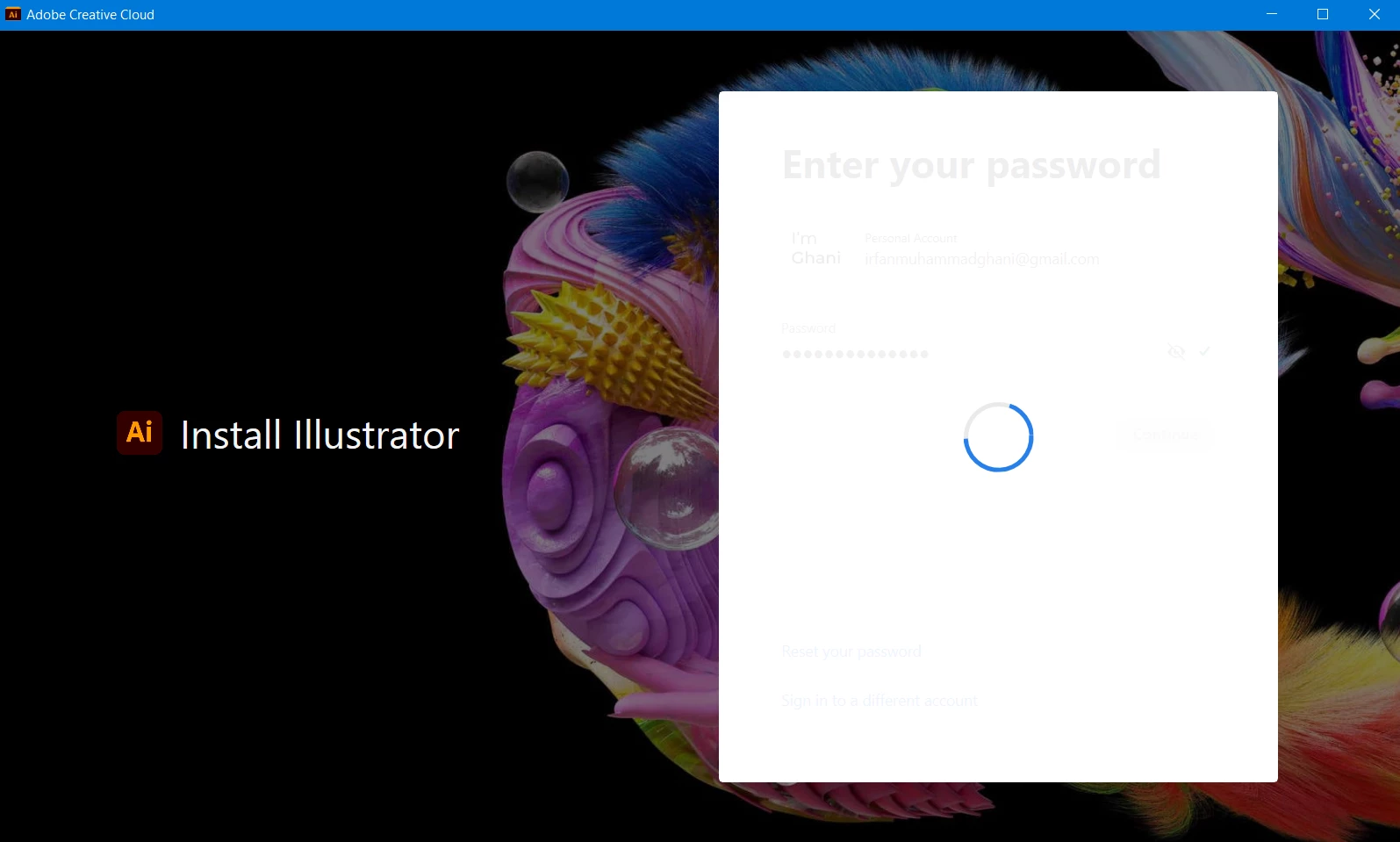 I want to install illustrator but it takes too long time to sign in, here is my internet connection speed and the windows showing sign in process..