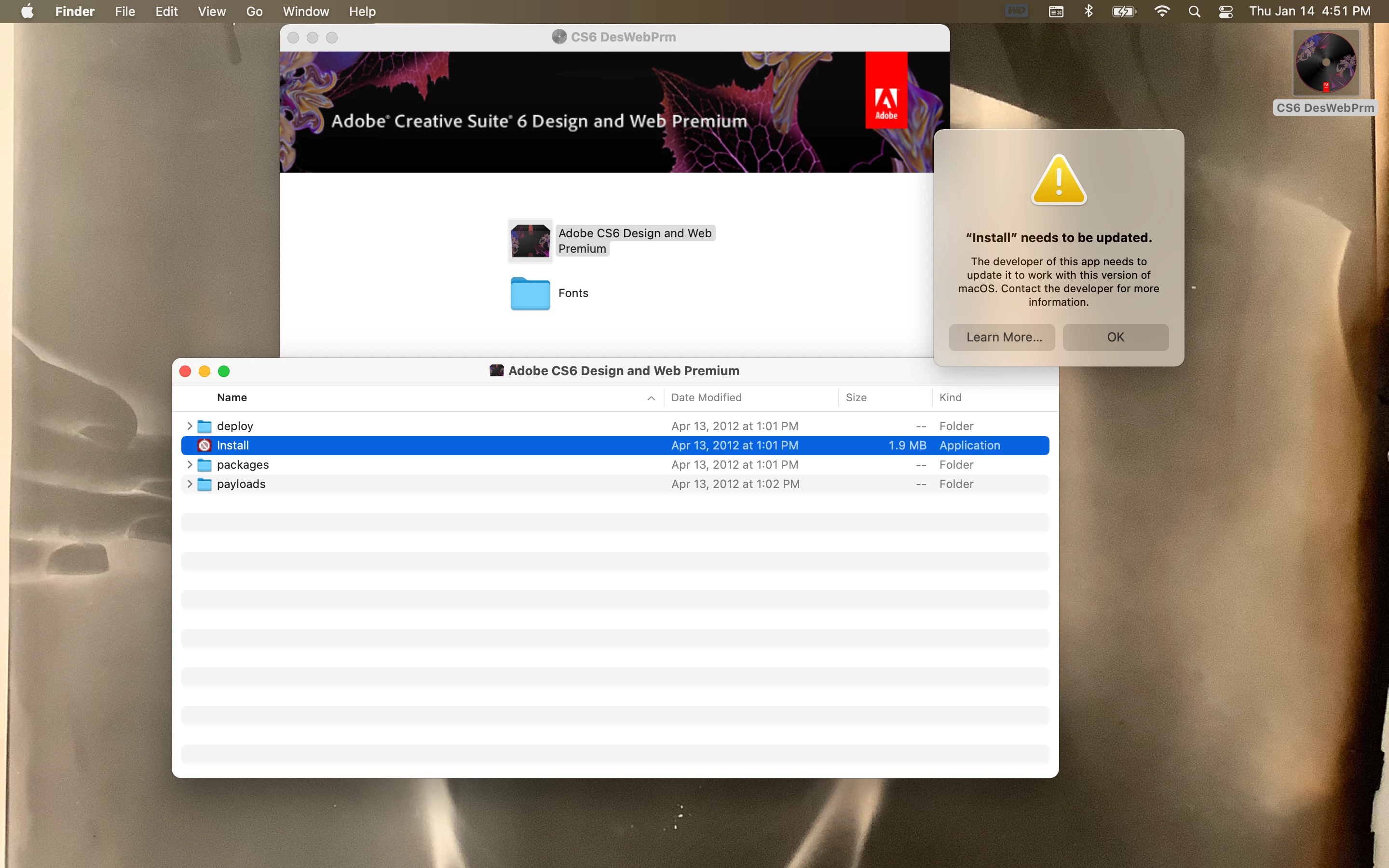 Installing Adobe CS6 on MacBook Air with macOS Big Sur version 11.1