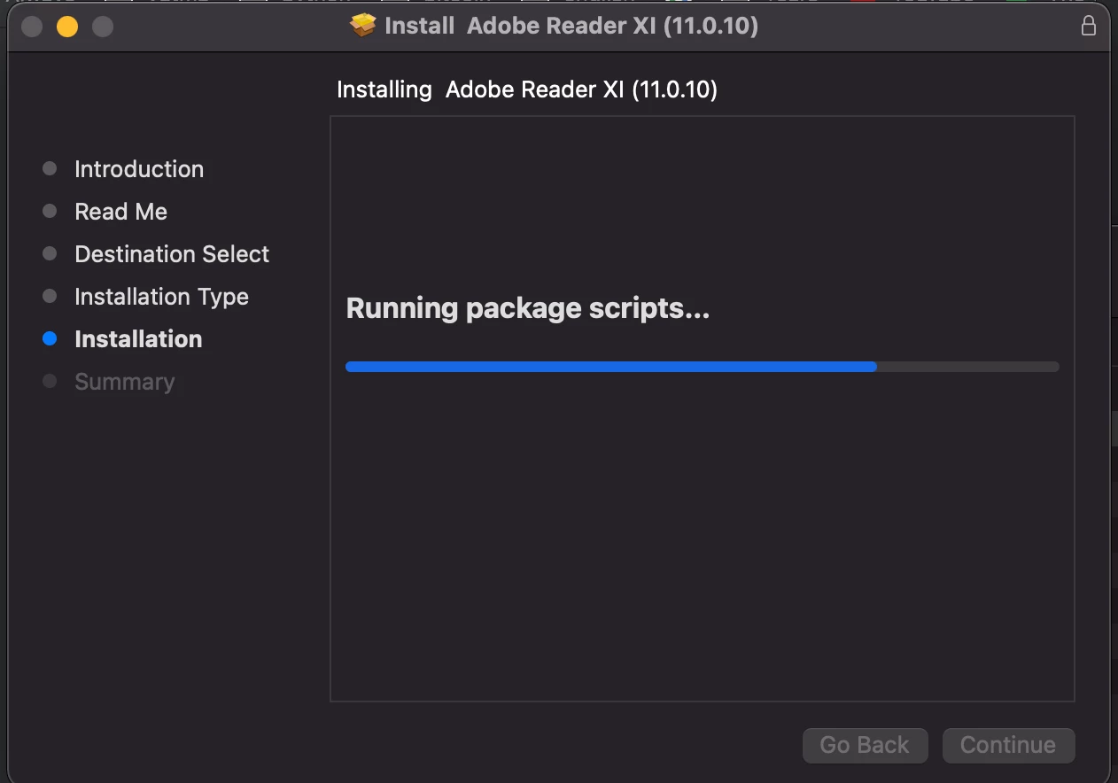 Installing Adobe reader XI (11.0.10) Running package scripts