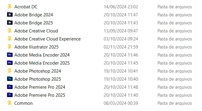 I don't use bridge nor media encoder, and I noticed that there are duplicates of the same program but from different years in this folder (idk why don't they let just the updated version). I use Illustrator and PS, and sometimes I be with these two programs opened a lot of time in my notebook (which by excellence consume some disk), but when I close them I expect it to return to 110gb space free, which is not hapenning now (1-2 months ago was like that), and I suppose that has something to do with adobe applications, since by now I'm using my note just to use these programs, navigate (I use brave browser) and nothing else more (don't know if there are unnecessary temporary archives that keep in my PC from Adobe - I thought that for each update they remove the previous versions of program, but it seems that this isn't true for new years programs).