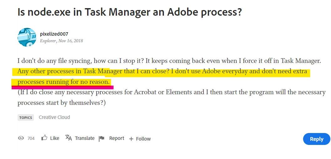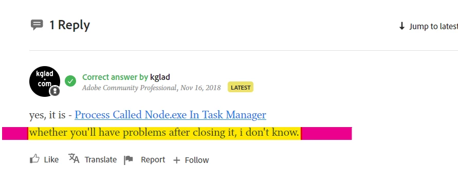 Is node.exe in Task Manager an Adobe process?