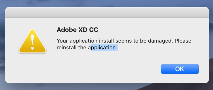 Recently signed up for a Creative Cloud subscription, downloaded and installed Photoshop, Illustrator, and InDesign with no issues. Tried installing XD but constantly get the following error message when I attempt to run it:
