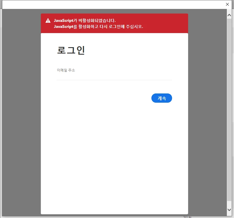 javascript error popup. can't start.