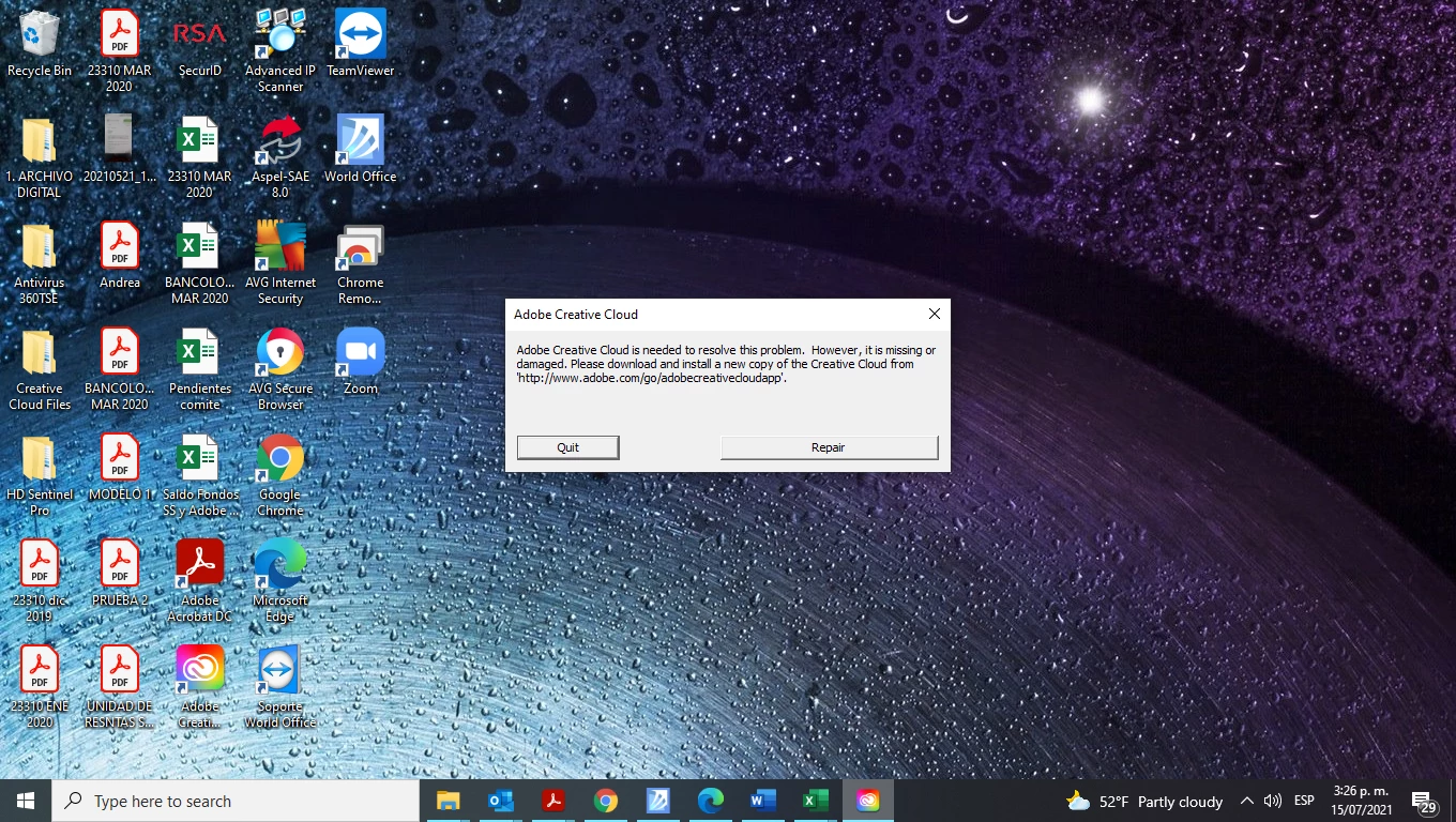 La aplicacion de escritorio solicita reparar en mas de una ocasión sin haberlo solicitado.