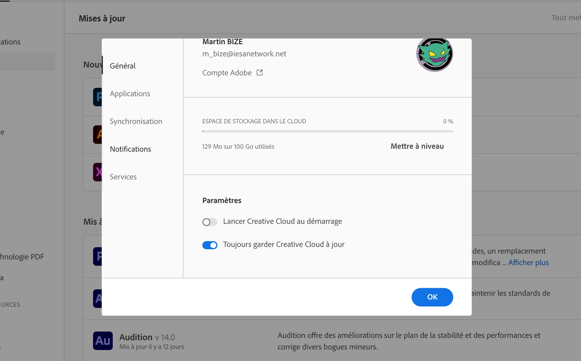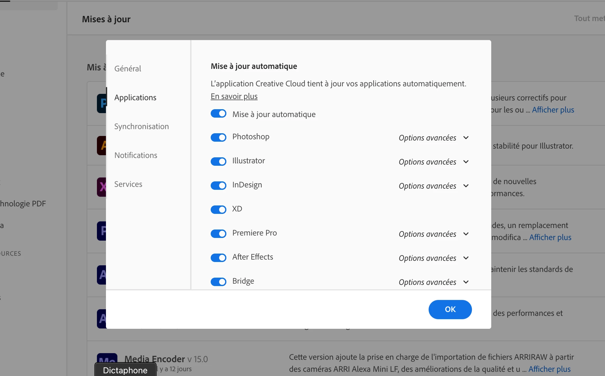 Les mises à jour également, j'ai activé les mises à jour automatiques dans les préférences mais Creative Cloud me demandent à chaque fois si je veux mettre à jour les applications.