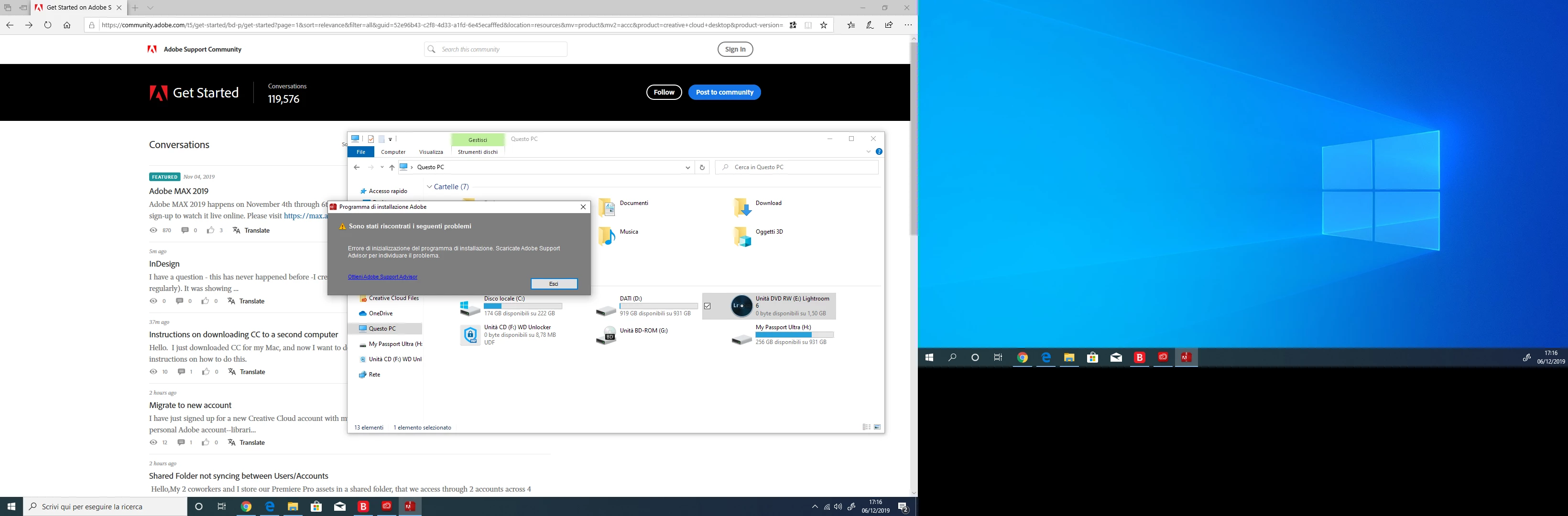 Thanks for the help. I managed to install lightroom, uninstalling adobe creative cloud (the updated version). With the version of the cd lightroom installation disk runs. Good evening and thanks