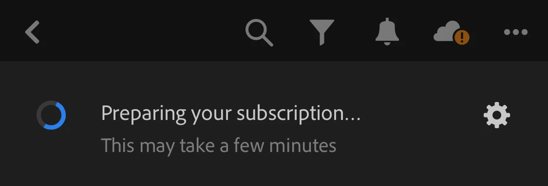 Lightroom Mobile showing “ Preparing your Subscription ”