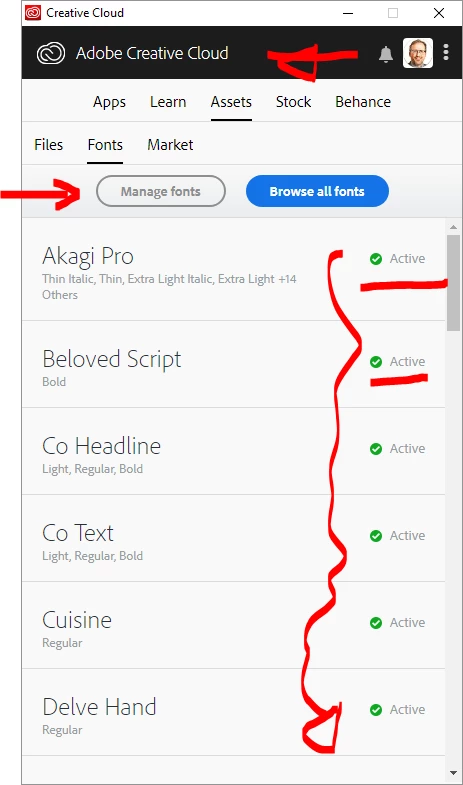 Im trying to get a list of fonts that adobe cc 2018 uses. As i have installed other fonts too on top of that and need to be careful of what I use as some of them are for personal use only! Im mixed up in which fonts are free with adobe cc and other fonts. Is there a list anywhere?