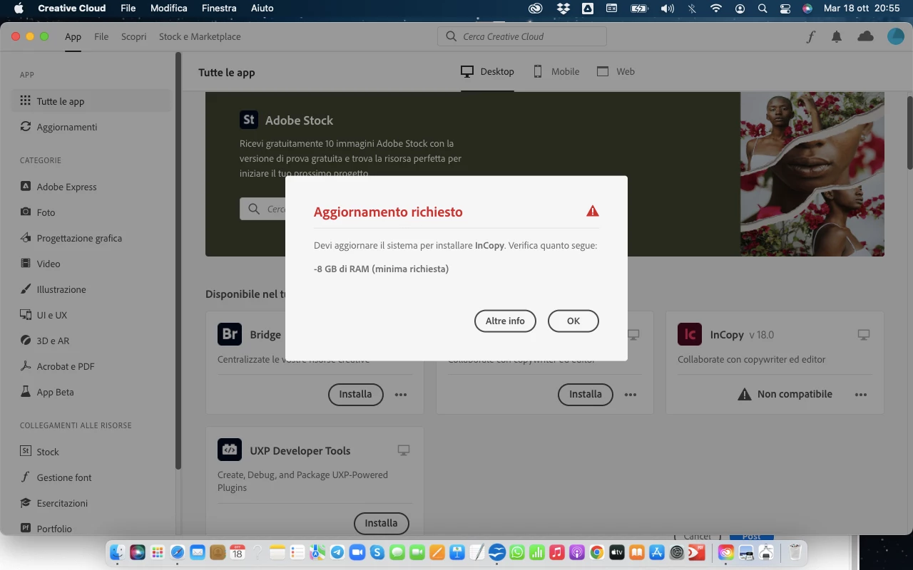 Non riesco a installare incopy18.0 sul mac Monterey con versione 12.6. Dice che Non è compatibile con questo dispositivo