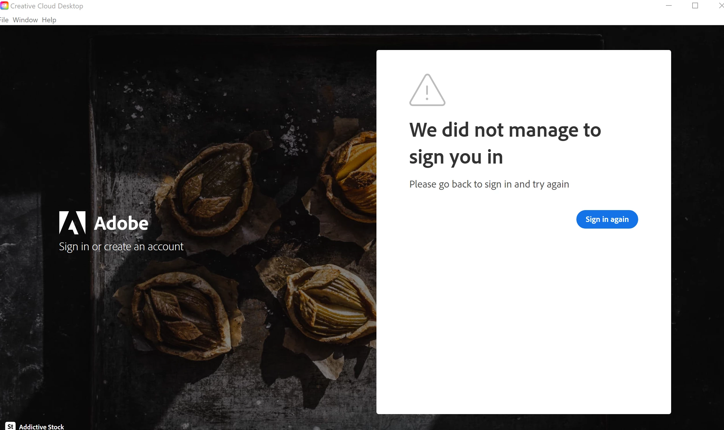 Wwong24683001yve8ParticipantForum|Forum|3 years agoJune 1, 2022Questionlogin errorForum|Forum|3 years agoJune 1, 20221 reply280 viewsWhen I am trying to login to adobe acrobat, the below error occurs: Error There was an error with this action. Try again later. 5e1a8f92-2fc6-4307-894d-7dd95cc983ec And also when I sign in to adobe creative, its said "We did not maange to sign you in" Manage account