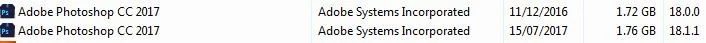 Also, I was going to uninstall a program from my computer and when I went to do that, it shows that I have Adobe Photoshop CC 2017 installed twice in my list of programs.