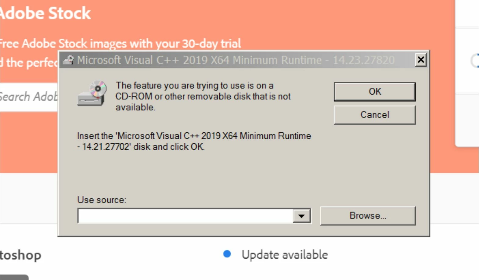 Every time I try to update my Adobe apps, I get the screen shown below. I've tried all the fixes mentioned in the forum, but none of them work for me. The install sites that link to the re-install just won't work. The install process errors out. I can update the Creative Cloud program itself, but not any of the apps that show an update available. Thanks.