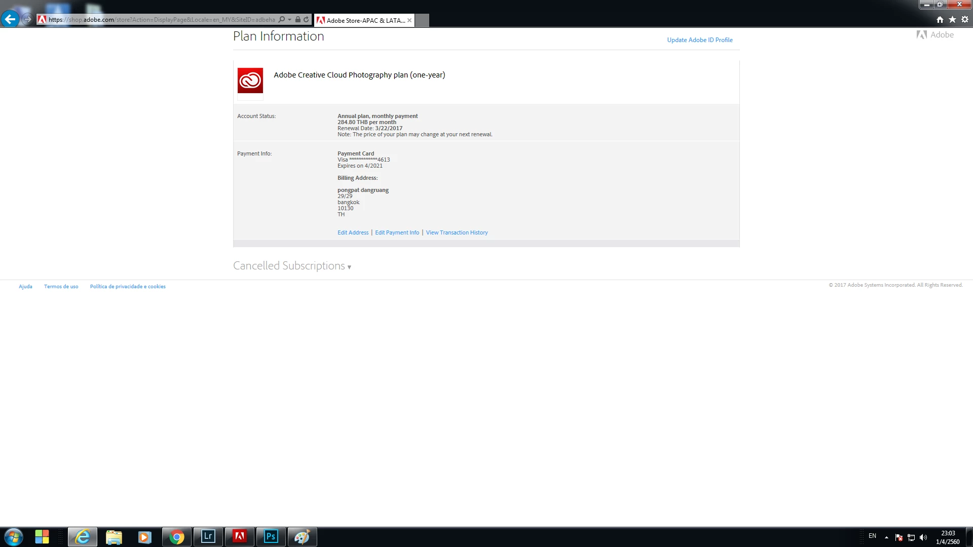 Let me validate your way. I have followed the list. But you do not cut money in the account.  Monthly payment  Adobe Please check the accuracy.
