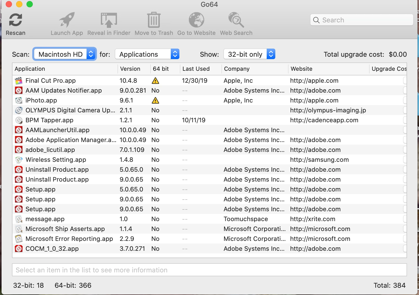 All my creative cloud programs are working on 64 bit OS Catalina on my MBP. Can I delete the 32-bit files show below as indicated by a NO in the 64-bit column? Thanks in advance!