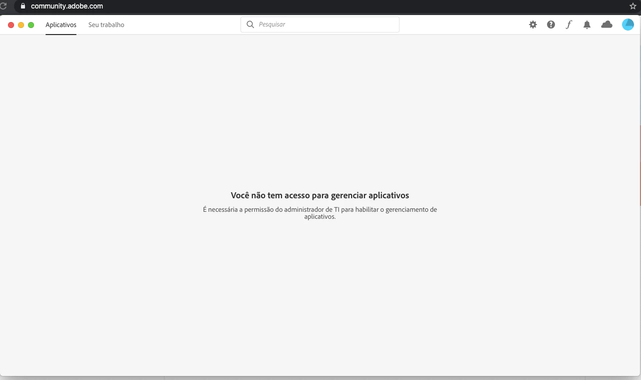 Acesso a conta no aplicativo da CC, o plano está sendo pago, porém quando vou na área de aplicativos ele exibe a mensagem "Você não tem acesso para gerenciar aplicativos".