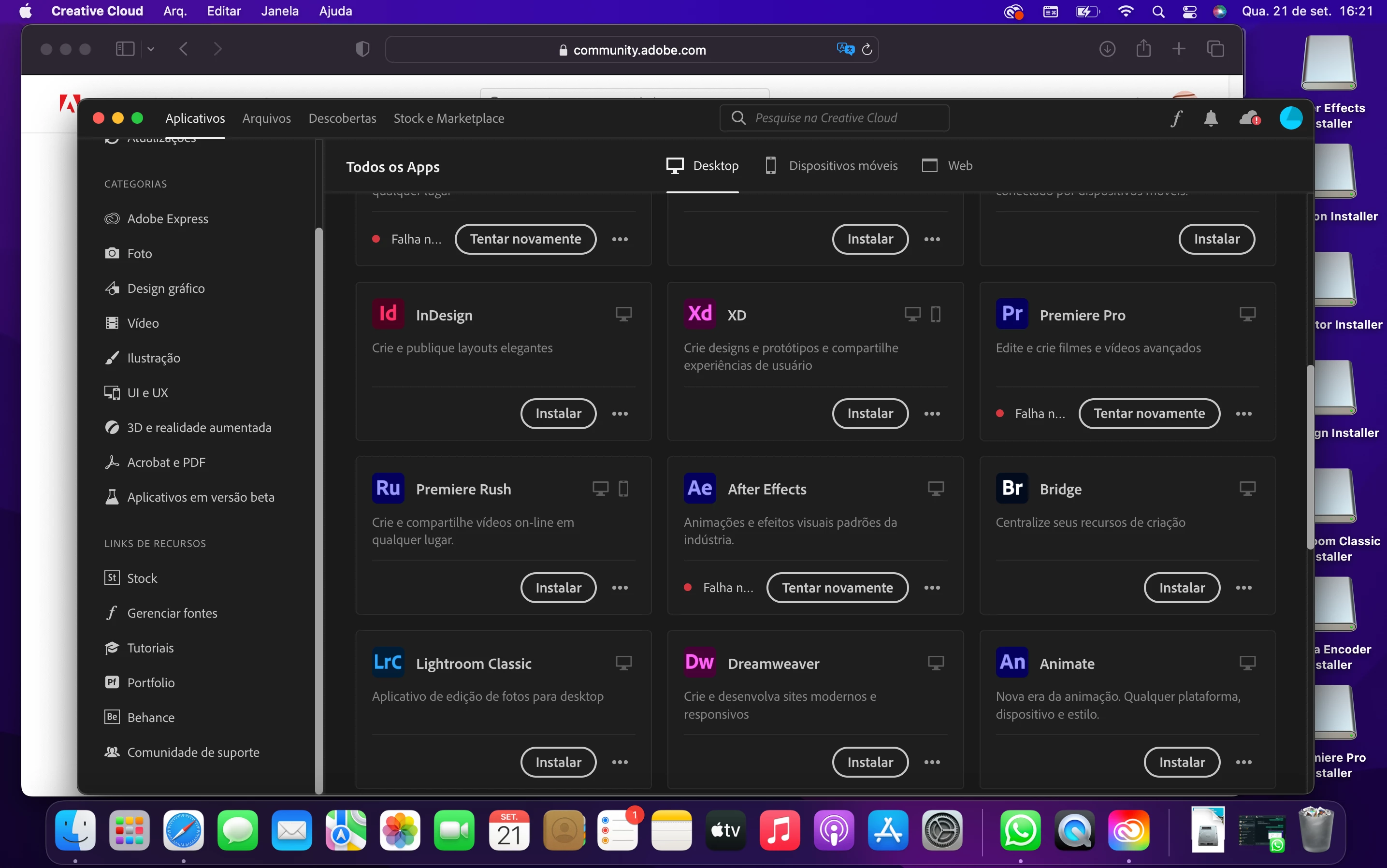 Ola assinei o pacote completo da adobe porem nao consigo instalar os programas preciso de ajuda... (tentei baixar os software de forma ilegal, creio ue isto que esta atrapanhando)