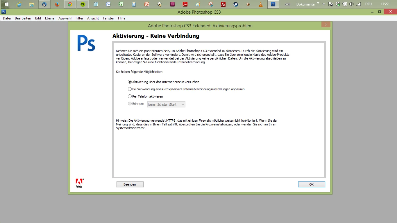 Need to activate Adobe Photoshop CS3 again but it won't work