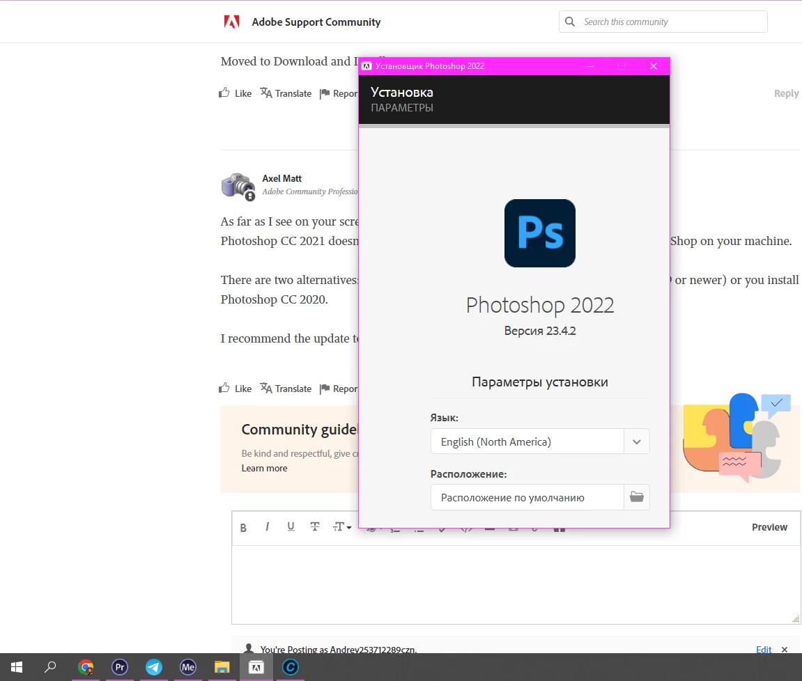 Нет кнопки продолжить в установщике фотошопа