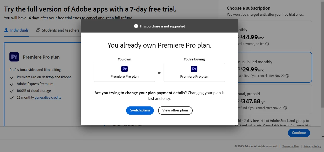 No Option to Download Premiere Pro After Puchasing Free Trial?