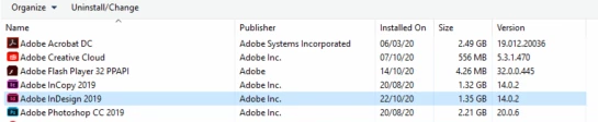 1 - When logged into Adobe Creative Cloud (ACC) there are no options to update to the most recent version of InDesign(v16) and Photoshop(v22) - Currently on v14.0.4 & 20.0.6 respectively.