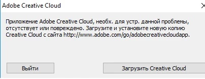 приложение adobe creative cloud необходимое для устранения данной проблемы отсутствует или повреждено.
