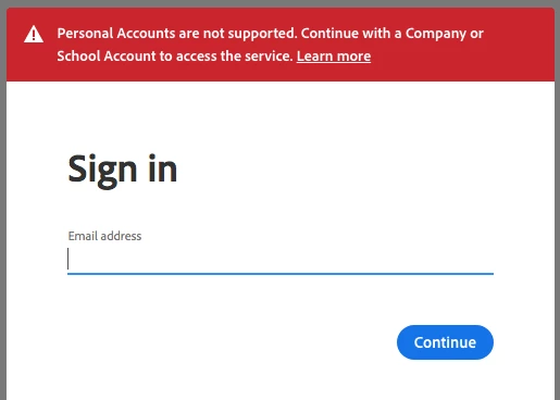 "Personal Accounts Not Supported" error