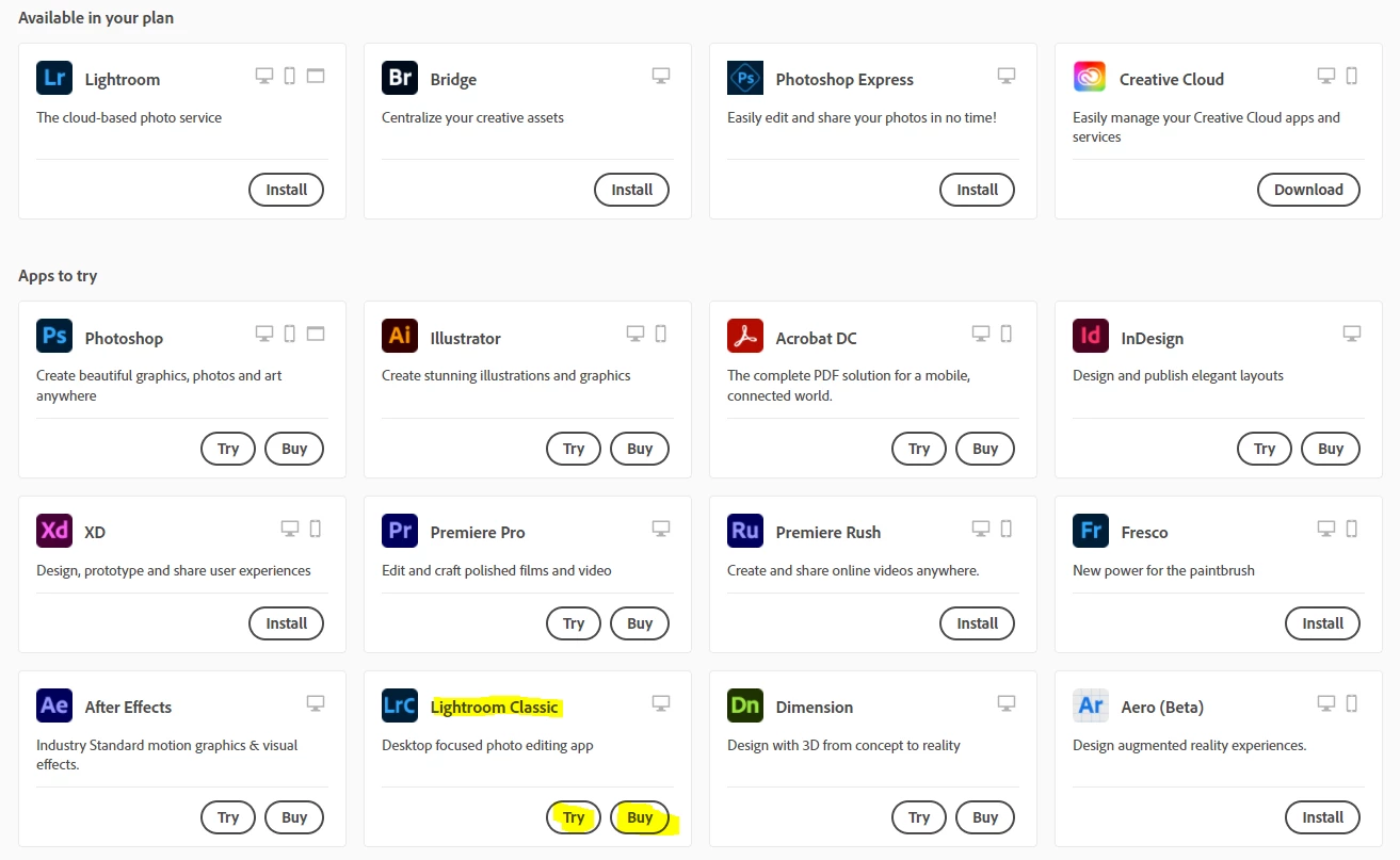 Solved - Seems that logging out and in again solved it, all apps now appears with install button.