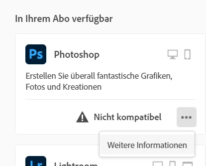 Hallo, ich würde gerne eine ältere Version von Photoshop installieren, da die aktuelle nicht mit meiner Hardware kompatibel ist. Allerdings wird die Option "ältere Versionen" nicht mehr angezeigt. Was kann ich machen?