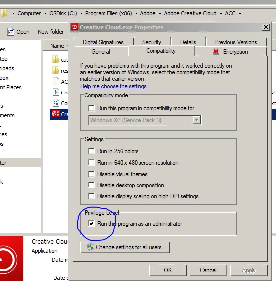 You can also set it to run as admin...