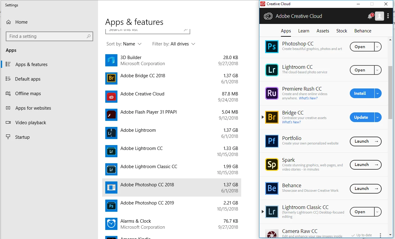 I am cleaning up space on my computer and it shows Adobe Photoshop CS 2018 is installed twice (one version from 6/1/2018 and one from 10/12/2018), should I keep both? I have had the Adobe Cloud (with Photoshop) for about 2 years.