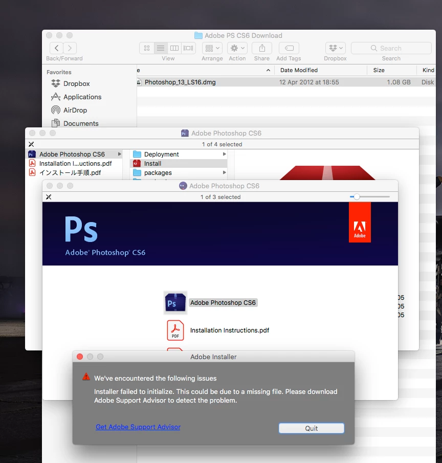 “Installer failed to initialize. This could be due to a missing file. Please download Adobe Support Advisor to detect the problem. “