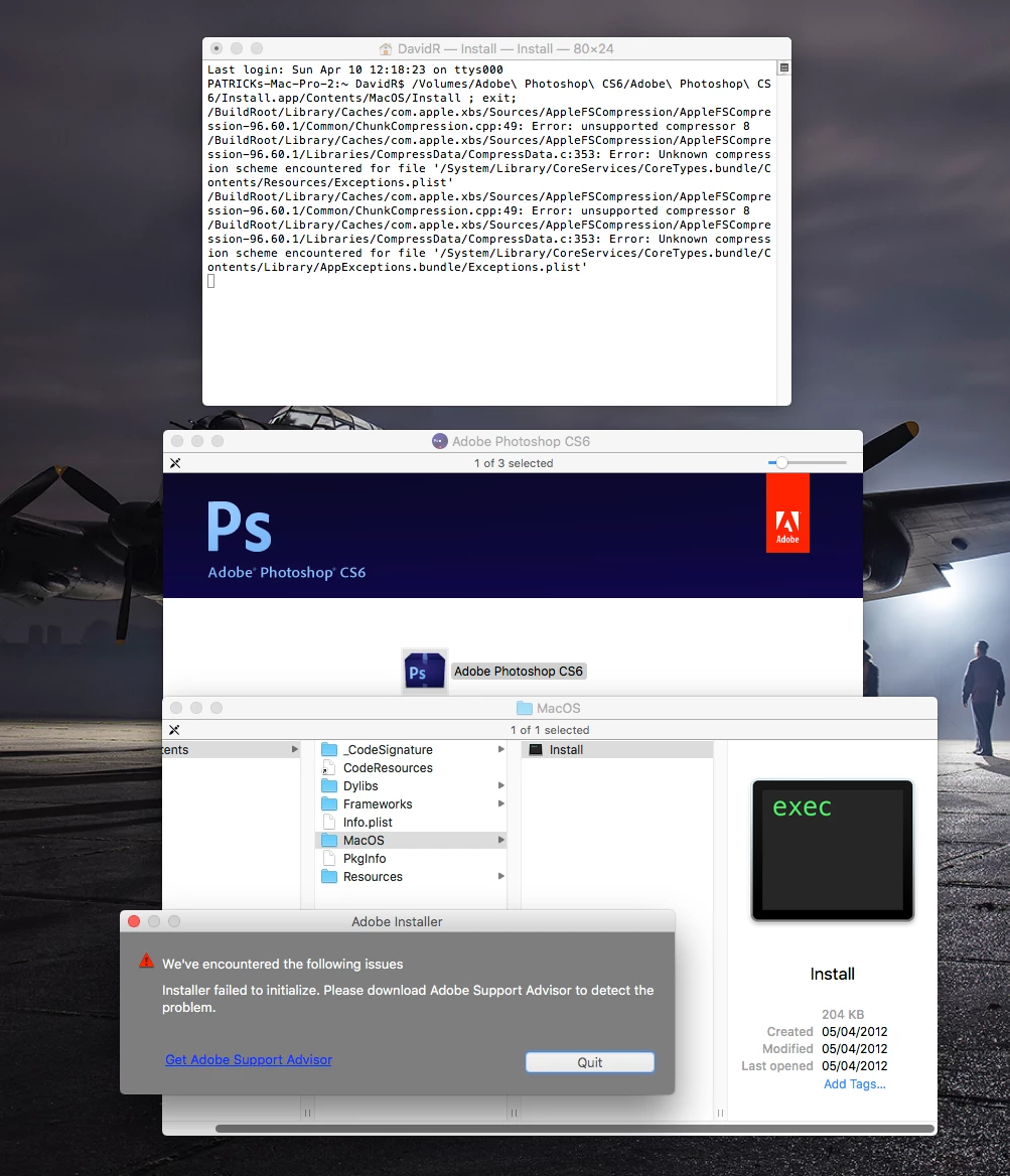 Recently I was unable to start my Photoshop CS6 software. Adobe Bridge seems to be working fine, but not PS CS6. I tried downloading and reinstalling from my Adobe Licencing Website. For some reason the CS6 version does not appear on my Adobe Account management page, which seemed to stop at CS5). However, I got the following message when trying to install it: