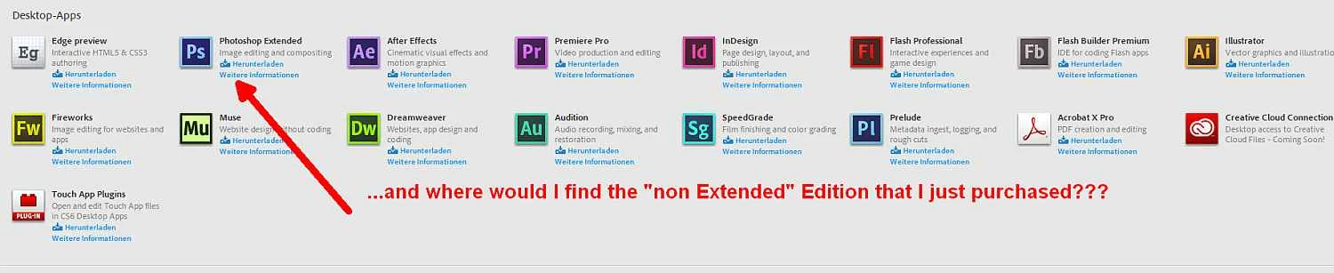 However, following the download link under My Orders, I am only offered to download + install the Ps CS6 Extended Version (see screenshot below)