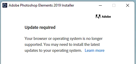 Photoshop Elements 2019 won't install on Windows 11 public release. It thinks I'm using an outdated Windows version. Compatiblity modes don't work. I get the following message consistantly...