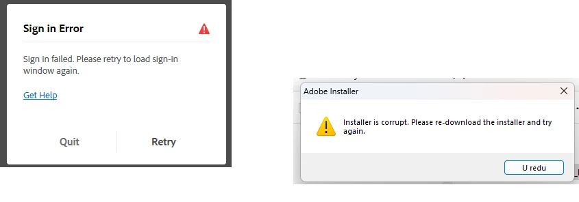 Photoshop elements - issue downloading and installing - Installer is corrupt / Sign in error