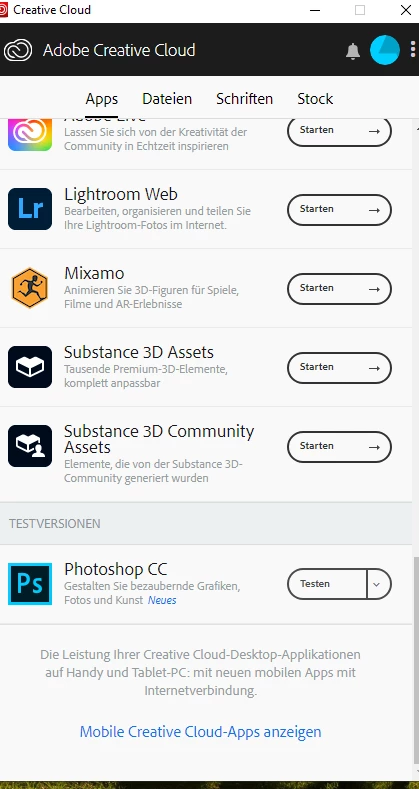 Ich kann leider Photoshop nicht installieren. In Adobe Creative Cloud steht nur eine Testversion von Ps CC zu Verfügung und beim Herunterladen bleibt der Download bei 46% hängen.