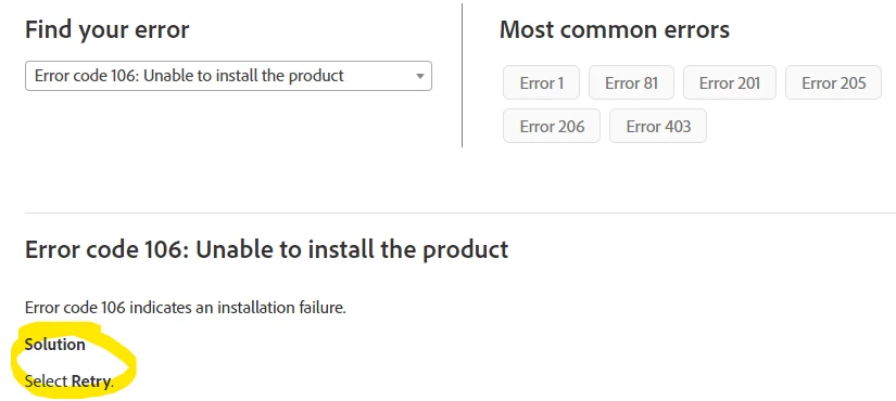 Here is what Adobe instructs me to do for this error. Extremely unhelpful, Adobe.