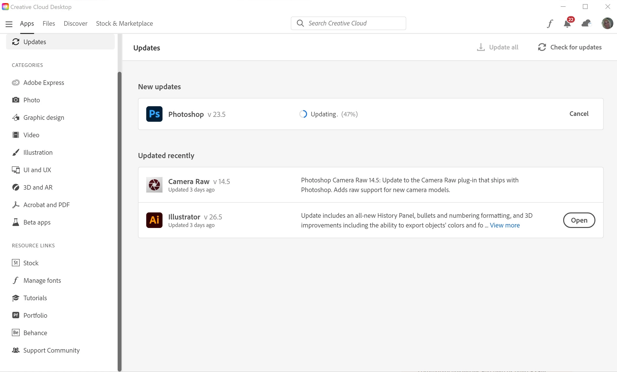 Photoshop update does not progress past 47%
