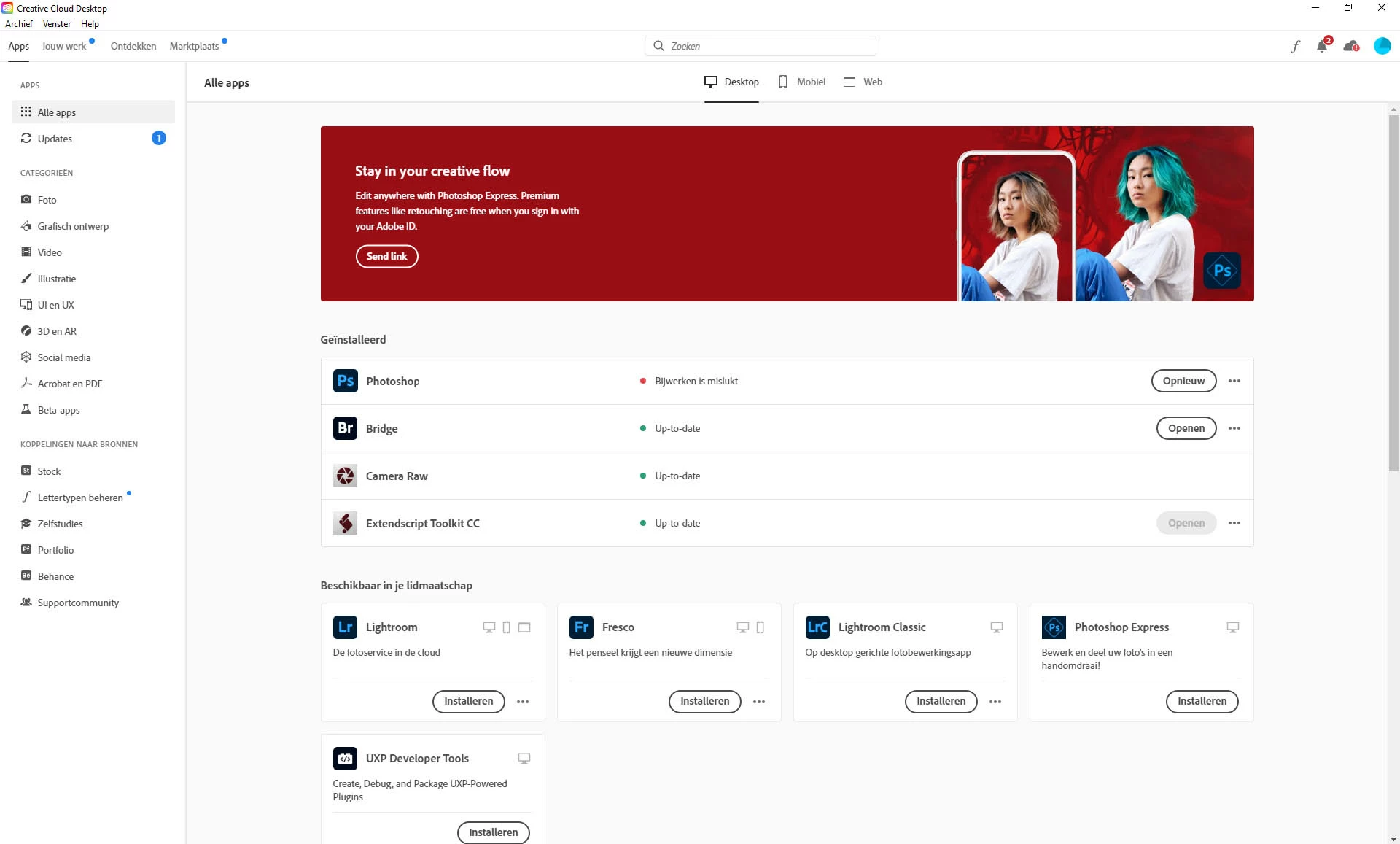 te updaten via CC. Echter na zo'n 28% geeft het programma aan: Bijwerken mislukt! Dit heb ik nu talloze keren geprobeerd zonder enig resultaat.