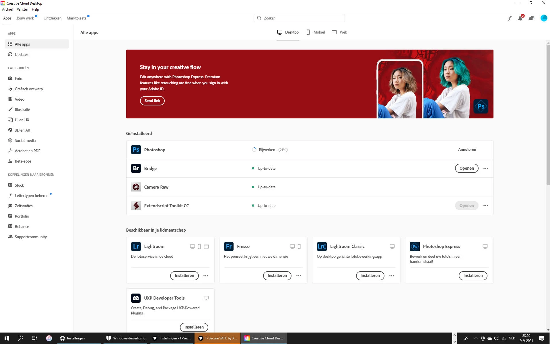Ik probeer al enige tijd mij photoshop versie Adobe Photoshop Version: 22.4.2 20210602.r.242 a4f6042 x64