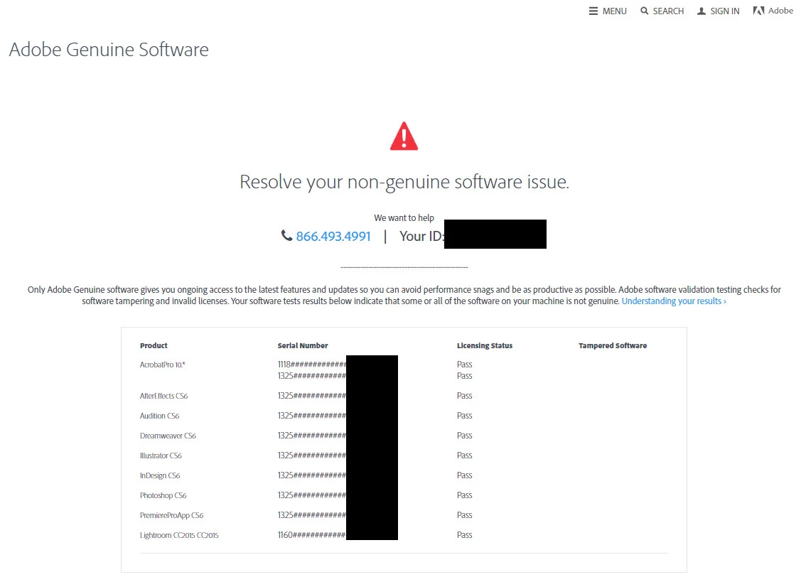 2) Why is Adobe FALSELY ACCUSING ME OF PIRATING their software. I have proof of legitimacy, including serial numbers