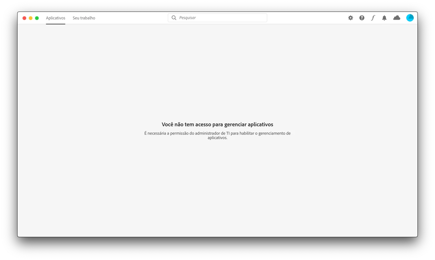 Preciso de ajuda, meu Creative Cloud diz que não tenho acesso para gerenciar aplicativos.