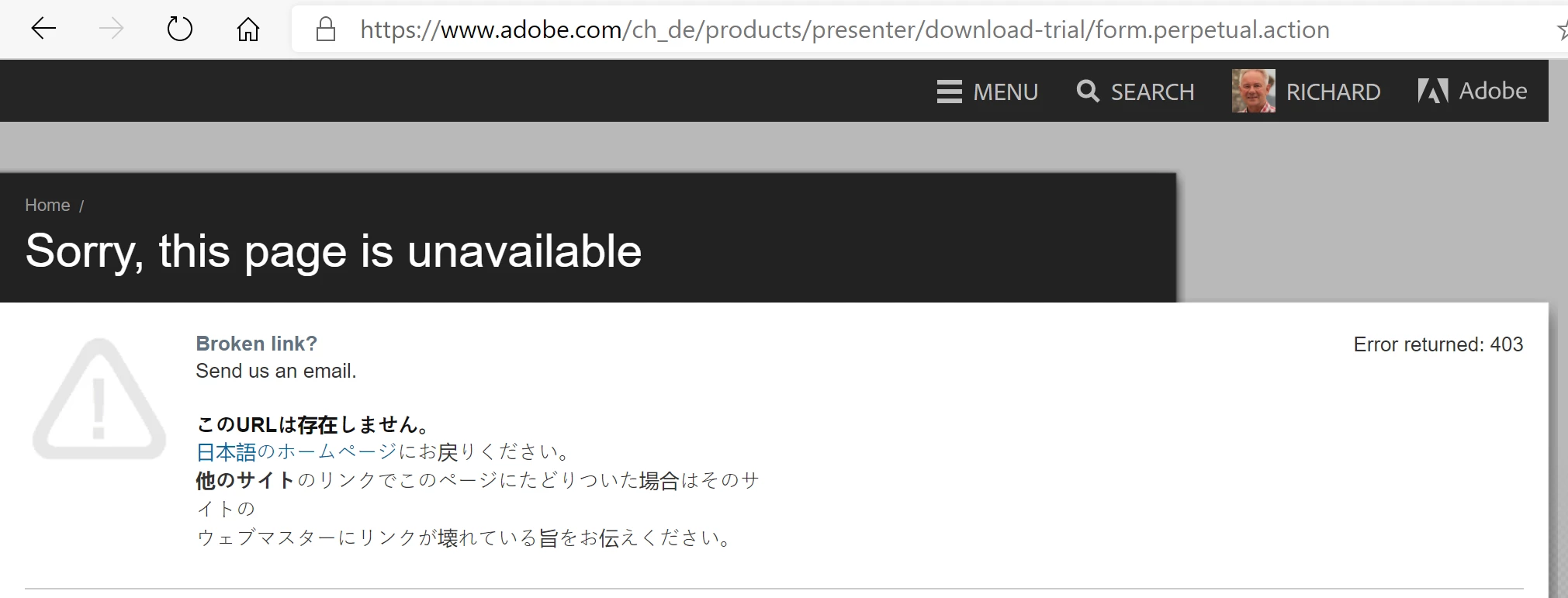 I have tried the free download of Presenter 11.1 on various ways. I always get the same result. "Sorry, this page is unavailable". Does somebody know why? Thank you. Richard