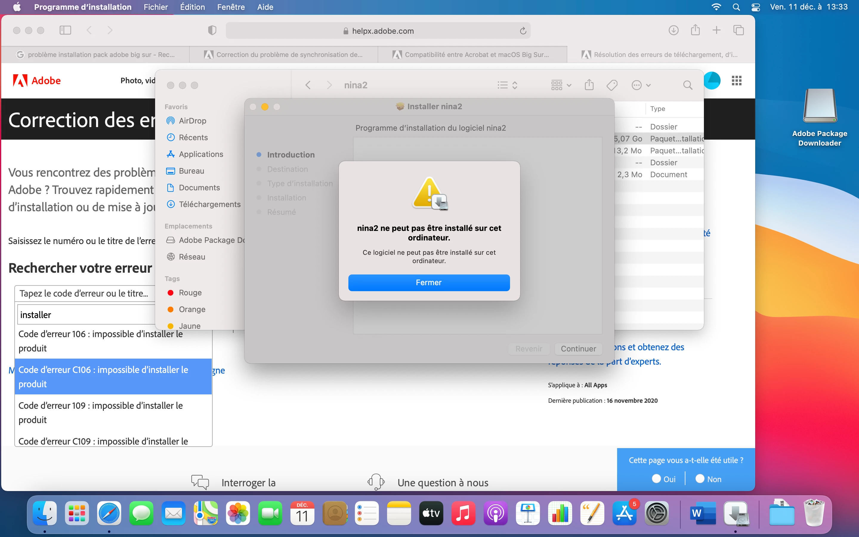 After creating and downloading a pack from my account, i try to install this. A error comes immediately. Only "can't install", no error code.