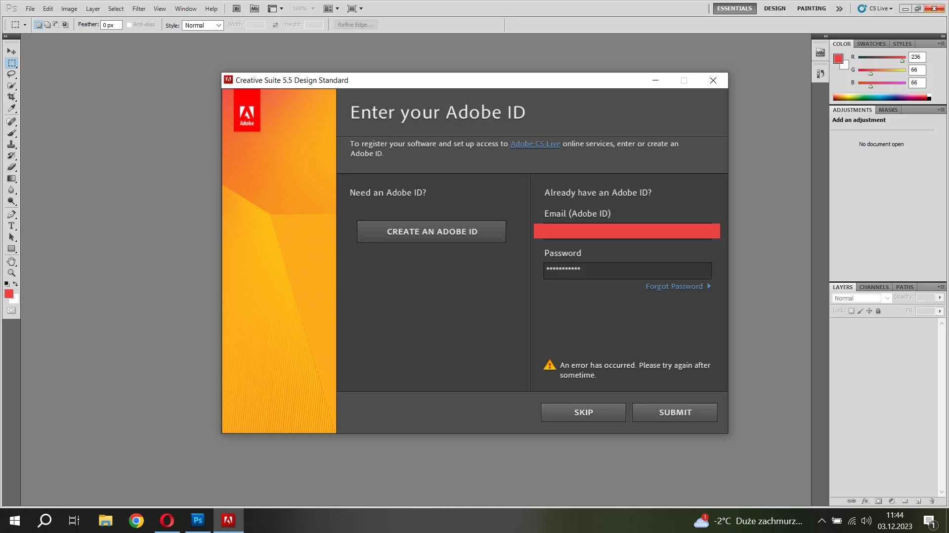 Hi, I'm having trouble registering an old Adobe product (CS 5.5 Design Standard) on Windows. I bought a new computer and I want to install it on it (it will be a second computer - I only use Windows). I downloaded the installation files from Adobe's website, where I have registered this product, and during installation I got a message that the serial number is incorrect (I copied it from my Adobe account). I have the following versions of installation files to download from my account: "CS5.5 Design Standard - Danish, Dutch, Finnish, French, German, Italian, Norwegian, Portuguese, Spanish, and Swedish", second one "CS5.5 Design Standard - English (Required) zip file for Windows)" and "CS5.5 Design Standard - Japanese (Required zip file for Windows)". The same error with the serial number appears with the first two versions, I haven't tried the Japanese version, but I bought the physical Adobe product in Poland, I use it in the Polish language version (interestingly, it is not included in the description in any installation package here and when I would like to install the trial version, Polish is also not included). How to solve this problem?