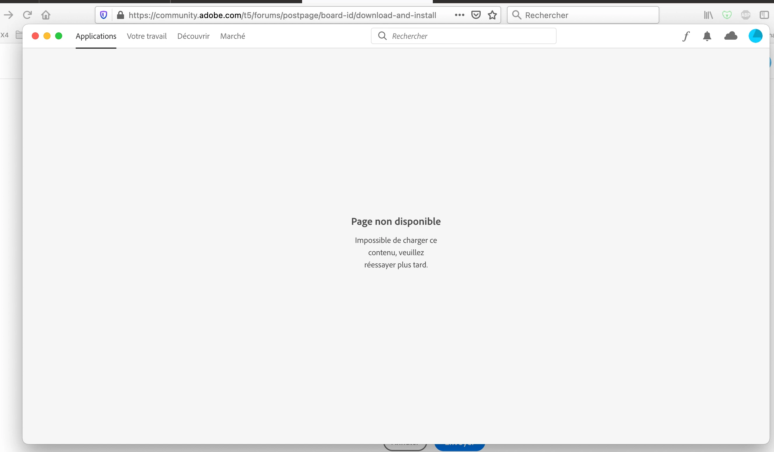 Probleme avec le logiciel Creative cloud